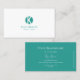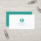 Plain White and Teal with Monogram Professional Business Card