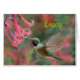 "Enjoy Sweet Pleasures de la vie" est le sentiment sur cette carte de voeux avec une grande queue de cheval à gorge rubis qui déguste le nectar d'un fleur sauvage.