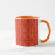Une chic Mug à café blanc avec une lèvre et une poignée orange et un motif délicat et damassé de Poppy contours en orange sur un arrière - plan rouge pavot. Une partie de la collection Posh & Painterly 'Poppy Fields'.