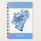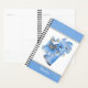 Pom-pom girl thème quotidien / planificateur mensuel fait en bleu clair et blanc avec des accents argentés. Des graphismes d'un uniforme gai, mégaphone et pom poms décorent l'avant. Personnalisez le texte blanc pour lire ce que vous voulez.
