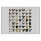 Quarante-neuf poules dans une série de races et couleurs semblent vives sur tout des chemises et des affiches aux cartes et aux tabliers !