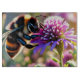 Une abeille vibrante survole délicatement une fleur violette qui fleurit. Le corps rayé de l'abeille contraste avec les pétales doux, soulignant la beauté de la pollinisation.