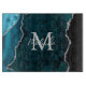 Cette planche à découper est ornée d'un élégant arrière - plan en marbre d'agate glamour avec des détails de gemstone de géode et des accents de parties scintillant faux argent. Le monogramme combine écriture manuscrite et polices sans serif modernes pour un look élégant et sophistiqué. Cela fera le cadeau idéal car il peut être customisé avec un nom et une initiale. Les teintes bleues turquoises et profondes le rendent parfait pour l'automne et l'hiver.