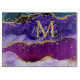 Cette planche à découper est décorée d'un élégant et glamour arrière - plan en marbre d'agate bleu turquoise et violet avec des accents de parties scintillant en faux or. Le monogramme combine écriture manuscrite et polices sans serif modernes pour un look élégant et sophistiqué. Cela fera le cadeau idéal car il peut être customisé avec un nom et une initiale. Les paillettes et la texture en mauvais état créent un mélange parfait de chic et de grunge.