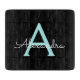 Noir et Aqua Bleu Turquoise Simple Script Monogramme Nom de la planche à découper. Cela fait le cadeau parfait de remise de diplômes, anniversaire, mariage, douche nuptiale, anniversaire, baby shower ou bachelorette pour quelqu'un qui aime le luxe glam et les styles chic.
