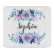 Planche À Découper Aquarelle bleu violet couronne florale Texte perso