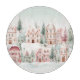 Une aquarelle rose et menthe Décor hivernal avec des maisons douillettes, des arbres de Noël et de la neige!