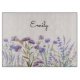 Voici notre Monogrammed Watercolor Purple Fleur sauvage Meadow Cutting Board. parfait pour les amateurs de boho chic et de fleurs.
