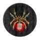 Araignée mécanique à vapeur avec or, engrenages en laiton et lampe en verre rouge sur un arrière - plan noir. Style Steampunk.