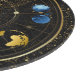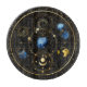 Beaux symboles astrologiques et célestes bleus et dorés dans le cercle doré et placé sur une image de velours noir avec des flocons d'or.