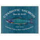 Un Saumon Sockeye aux tons bleus avec le texte "Cyanotic Saumon Bar & Grill Kenai, Alaska" et "Combat Fishing Rest And Relaxation. La pêche au saumon est très populaire, trop populaire en Alaska. Imaginez des centaines de pêcheurs, à peu près côte à côte, longeant les deux rives d'un ruisseau essayant d'éviter de traverser les lignes avec tout le monde dans l'espoir d'atterrir un grand saumon. C'est de la pêche au combat. Après un jour de cela, prenez un peu de R&R au mythique Saumon cyanotique de Kenai. Des contes de pêche y ont raconté...un peu vrai.