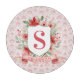 Ce modèle de dessous de verre de Noël présente un design grandmillennial prépa avec un blason floral entouré de baies et une lettre de monogramme au centre.