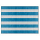 De larges bandes de transats bleues et blanches en gras sur des objets d'accueil évoquent les souvenirs du bord de mer.