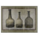 Art rustique, morne avec 3 bouteilles d'antiquités dans les tons feutrés de vert et de brun.