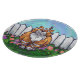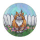 Animal Parade Ginger Cat Cadeaux et accessoires de chat apportés par ITD Animal Parade est notre art original d'un mignon chat orange et blanc debout dans une cour herbacée avec des fleurs et une palissade blanche avec un ciel bleu texturé et une bordure rose ondulée et ludique peinte par Traci Van Wagoner. Cet art amusant pour animaux de compagnie est parfait pour les amoureux de les chats et les amateurs d'art animal humoristique de tous âges. Sur la plupart de nos produits fantaisistes, vous trouverez ce chat mignon qui va et vient avec la tête du chat d'un côté et la queue peluche du chat de l'autre. Rejoignez la Parade des animaux et souvenez-vous de quelqu'un que vous aimez avec un cadeau de notre mignon chat gingembre. Salut !