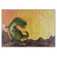 Animal Parade T-Rex Dinosaur Glass Cutting Board apporté par ITD Animal Parade présente notre art original d'un Tyrannosaurus Rex mignon du devant et du dos debout dans un paysage préhistorique avec un volcan fumant, un ciel jaune orangé texturé, et une bordure violette espiègle. Peint par Traci Van Wagoner, notre talentueux illustrateur pour enfants, ce mignon T-Rex dino est parfait pour les enfants de tous âges, et il est sûr d'apporter un sourire aux visages de tous les amateurs de dinosaures sur votre liste de cadeaux.