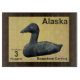 Un timbre-poste d'un Alaska mythique et indépendant, orné d'une sculpture en pierre à savon d'un canard à Eider. L'arrière - plan est peau d'orignal tannée au cerveau. Il s'agit d'un rendu numérique, pas d'un objet en pierre à savon. L'Eider à duvet, Somateria mollissima, est le plus grand canard d'Europe et d'Amérique du Nord (à l'exception du Canard de la Muscovy qui ne touche que l'Amérique du Nord dans un état sauvage à l'extrême sud du Texas) L'Eider est distribué sur les côtes nord de l'Europe, de l'Amérique du Nord et de la Sibérie orientale. Il se reproduit dans l'Arctique et dans certaines régions tempérées du nord, mais hiverne un peu plus au sud dans les zones tempérées, lorsqu'il peut former de grands troupeaux dans les eaux côtières. Il peut voler à des vitesses allant jusqu'à 70 mi/h (113 km). L'Eider se caractérise par sa forme encombrante et son grand bec en forme de coin. Le mâle est indéniable, avec son plumage noir et blanc et sa nuque verte. La femelle est un oiseau brun, mais on peut toujours facilement la distinguer de tous les canards, sauf d'autres espèces d'eiders, en fonction de la taille et de la forme de la tête. L'appel de ce canard est un joli "ah-ooo". L'espèce est souvent facilement accessible. Les dessins des races d'Europe, de l'Est de l'Amérique du Nord et d'Asie/Ouest de l'Amérique du Nord peuvent être distingués par des différences mineures de couleur du plumage et du bec. Cette espèce plonge pour les crustacés et les mollusques, les moules étant un aliment favori. L'Eider mangera les moules en les avalant entières; les coquilles sont ensuite écrasées dans leur estomac et excrétées. Lorsque vous mangez un crabe, l'Eider enlève toutes ses griffes et ses pattes, puis il mange le corps de la même façon. Il est abondant, avec des populations d'environ 1,5-2 millions d'oiseaux en Amérique du Nord et en Europe, et aussi un grand nombre mais inconnu dans l'est de la Sibérie. Une colonie d'eiders particulièrement célèbre vit sur les îles Farne, à Northumberland, en Angleterre. Ces oiseaux ont fait l'objet de l'une des premières lois sur la protection des oiseaux, établie par Saint Cuthbert en 676. Environ 1 000 couples y nichent encore chaque année. Comme Saint-Cuthbert est le saint patron de Northumberland, il était naturel que l'eider soit choisi comme oiseau emblème du comté; les oiseaux sont encore souvent appelés canards de Cuddy dans la région, "Cuddy" étant la forme familière de "Cuthbert". L'Eidre commun est l'une des espèces auxquelles s'applique l'Accord sur la conservation des oiseaux aquatiques migrateurs d'Afrique-Eurasie (AEWA). Les eiders sont des éleveurs coloniaux. Ils nichent sur les îles côtières dans des colonies de moins de 100 à plus de 10 000 à 15 000 individus. Les eiders femelles présentent souvent un haut degré de philopatrie natale, où ils reviennent se reproduire sur la même île où ils ont été éclos. Cela peut conduire à un degré élevé de relation entre les individus qui nichent sur la même île, ainsi que le développement de structures sociales féminines basées sur la parenté. Cette relation a probablement joué un rôle dans l'évolution des comportements de reproduction coopératifs chez les eiders. Parmi ces comportements, on peut citer la ponte d'oeufs dans les nids d'individus apparentés et la crèching, où les eiders femelles s'associent et partagent le travail d'élevage des ducklings. Le nid de l'eider est construit près de la mer et est bordé de la célèbre édredon, arraché du sein de la femelle. Ce revêtement doux et chaud a été longtemps récolté pour remplir les coussins et les courtepointes, mais ces dernières années a été largement remplacé par le duvet des oies agricoles domestiques et des alternatives synthétiques. Bien que les coussins de duvet ou les courtepointes soient maintenant rares, la récolte des duvet se poursuit et est durable, comme cela peut être fait après que les canetons quittent le nid sans nuire aux oiseaux.