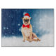Une belle photo de carlin portant un chapeau de Noël et assis dans la neige. Un cadeau de Noël parfait pour quelqu'un qui aime le carlin ou qui possède cette race de chien.