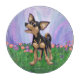 Animal Parade Cute Chihuahua Chiffres Cadeaux et Accessoires créés par Imagine That! Le design met en valeur notre joli personnage de chien blanc et bronzé debout dans une cour herbeuse avec une clôture en brique rouge, un ciel bleu texturé et une bordure violette ondulée et ludique peinte par notre talentueux artiste de livres pour enfants, Traci Van Wagoner. Cet art amusant pour animaux de compagnie est parfait pour les petits amoureux de les chiens et les amateurs d'art animal humoristique de tous âges. Sur la plupart de nos produits fantaisistes Chihuahua, vous trouverez ce mignon chiot qui va avec la tête de Chihuahua joueuse d'un côté et la queue de chien drôle de l'autre. Rejoignez la Parade des animaux et sourirez quelqu'un que vous aimez. Malheur !
