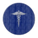 Planche À Découper Chrome Style Caduceus Symbole Médicale sur bleu ma