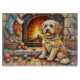 Planche À Découper Cockapoo Sitting by Fireplace with Christmas Light