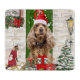 Cocker Spaniel Dog assis à l'extérieur de la maison décorée avec la couronne de Noël, le sapin de Noël est une idée cadeau de Noël parfait pour les amoureux de les chiens.