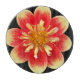 Coupez et découpez votre nourriture en toute sécurité sur cette planche de coupe en verre rond décorative qui présente l'image d'une Collarette orange et jaune Dahlia fleurie sur un arrière - plan noir. Un joli design floral !