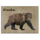 Une peinture numérique d'un ours Kodiak sur un parchemin neutre, ou vieux papier, arrière - plan. Le texte "Alaska" apparaît également. L'Ours de Kodiak (Ursus arctos middendorffi), une sous-espèce de l'ours brun, ou grizzli, est le plus grand ours du monde. Un mâle adulte peut mesurer plus de 10 mètres de haut lorsqu'il est debout sur ses pattes postérieures et peser plus de 1500 livres - un spectacle à voir. Un ours du zoo de Bismarck, dans le Dakota du Nord, aurait pesé jusqu'à 2 400 livres. Les ours vivent sur les îles de l'archipel Kodiak de l'Alaska. Aujourd'hui, il y a environ 3500 ours kodiak et leur nombre augmente en raison de l'état généralement excellent de leur habitat, y compris un poing suffisant pour se nourrir. Ils sont appelés "takuka-aq" en Alutiiq, la langue maternelle du peuple dans cette région. On pense que les ours y ont été isolés depuis la fin de la dernière ère glaciaire, il y a plus de 12 000 ans. Bien qu'ils soient le plus grand carnivore terrestre leur régime alimentaire comprend de grandes quantités d'herbe, d'autres plantes et des baies. Aujourd'hui, il y a environ 3500 ours kodiak et leur nombre augmente en raison de l'état généralement excellent de leur habitat, y compris un nombre suffisant de poissons à manger. En raison de l'abondance des ressources alimentaires, les ours Kodiak ont une aire de répartition plus petite que les autres ours bruns et n'ont pas besoin de défendre les territoires. Les Alutiiq chassaient les ours pour leur nourriture, leurs vêtements et leurs outils. Des flèches, des lances et beaucoup de courage étaient nécessaires pour la chasse. Les têtes d'ours étaient généralement laissées dans le champ comme un signe de respect de l'esprit des ours.
