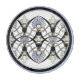Entre Art Nouveau et Art Déco, le design original de cette élégante planche de charcuterie est orné d'un grand motif récurrent de coquillages bleu-vert opalescent, de lamelles Celadon et rose pâle, de cordes gris argenté entées entrelacées dans la mode "Double Hollandaise" et d'arcades gothiques noires sur un arrière - plan blanc neige.