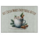 This winter hot cocoa composition centers on a softly shaded blue-gray cup resting on a snowy cloth, rendered as a cozy mug illustration that feels hand painted and warmly nostalgic. Steam-kissed foam and marshmallow hot chocolate accents pile high above the rim, surrounded by evergreen sprigs, cinnamon sticks, and star anise for fragrant seasonal charm. Gentle foliage and subtle patterning suggest cottagecore kitchen decor and invite thoughts of slow mornings and candlelit evenings, while the balanced layout creates a perfect holiday cocoa mug motif that feels both inviting and refined. Nordic-inspired borders echo scandinavian mug design cues, muted blues and creams build a calming neutral winter aesthetic, and the softly glowing highlights bring a sense of hygge home decor comfort to the entire scene. Delicate shading and layered transparencies give the illustration a luminous watercolor cocoa clipart quality ideal for cozy winter storytelling and timeless seasonal visuals. AI generated artwork.