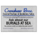 Crenshaw Bros. Bouquet publicitaire Alternative Mortuary Solutions pour le paquet Enterrement en mer. Humour funéraire sombre et macabre à son meilleur. Hilarious ligne Crenshaw est la parodie des services mortuaires et des techniques de marketing gonzo virale âge plus un peu "dort avec les poissons" humour jeté dans pour une bonne mesure.