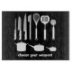 Choisissez votre arme. Conception drôle de cuisine pour le cuisinier dans votre famille. Pots et casseroles noirs et blancs. Grand cadeau pour des chefs et des cuisiniers !