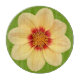 Coupez et découpez votre nourriture en toute sécurité sur cette planche décorative en verre qui présente l'image photo d'une fleur jaune Dahlia sur un arrière - plan vert citron. Un joli design floral !