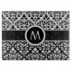 Défiler et feuille damask dans un motif de style vintage, avec détails blancs sur un arrière - plan noir en bas avec le dos de noir sur blanc en haut; avec bande et encerclée lettre/initiale à modifier à votre propre personnalisation.