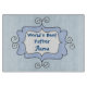 Un joli design, cet arrière - plan bleu clair sur une planche à découper, ce design présente un doodle bleu et blanc avec "Le meilleur Père du Monde" écrit dans une police bleue amusante. Il y a un modèle pour insérer le nom de votre père en dessous. Customisez le vôtre aujourd'hui !