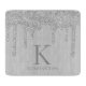 Girly Elegant Silver Sparkle Parties scintillant Drips Monogram Cutting Board avec la parties scintillant faux argent de la mode goutte à goutte sur un arrière - plan gris argenté chic avec votre monogramme personnalisé et nom. Conçu par Cèdre et String. Si vous avez besoin d'aide ou d'articles correspondants, veuillez nous contacter à cedarandstring@gmail.com .