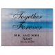 Cherchez votre journée spéciale avec cette planche à découper mariage. Ce tableau personnalisé présente un bel arrière - plan de plage avec le texte "Together Forever". En bas du tableau, il y a des champs de texte personnalisables pour ajouter vos informations de mariage. Vous pouvez également modifier l'arrière - plan si vous le souhaitez. Il suffit d'utiliser le modèle fourni pour customiser cet article. Ce plateau de service fait un grand cadeau mariage ou anniversaire.