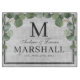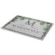 Bois blanc rustique avec planche à découper vert eucalyptus avec prénom de couple, monogramme de nom, nom complet et date mariage disponible en modèle personnalisable. Un joli cadeau à thème de barbecue de campagne pour aider à célébrer un repas mariage d'été.