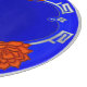 Originale, moderne, prenez une tradition chinois Lotus Blossom thème qui est mieux décrit comme : Beau, Téméraire, Bleu à la respiration! 3 fleurs rouge orangé et flamboyantes font ressortir le bleu royal riche et les accents gris argenté et la jante en font un choix élégant. Texte personnalisable pour votre monogramme au centre.