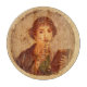 FRESCO OF SAPPHO POMPEII Découverte en 1760, est l'une des peintures les plus célèbres et les plus aimées, communément appelé Sappho. En fait représente une femme Pompéienne de haute société, richement habillée de cheveux filetés d'or et de larges boucles d'oreilles en or, amenant le stylet à la bouche et tenant les comprimés de cire, documents notoirement comptables qui n'ont donc rien à voir avec la poésie et encore moins avec le célèbre écrivain grec.