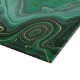 Ce design présente une élégante image numérique verte et dorée avec le motif pivotant distinctif de la pierre de malachite.