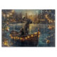 Jetez un coup d'oeil à la magie de la saison des Fêtes avec cette illustration magnifiquement détaillée, montrant un chien fier assis dans un bateau à la décoration festive, glissant à travers un lac serein de Noël. Les lumières scintillantes des pins voisins se reflètent dans l'eau, projetant une lumière chaude et festive qui renforce l'ambiance cosy. Des ornements pendent des côtés du bateau, tandis que des lanternes brillantes éclairent le chemin, créant une scène qui capture l'essence véritable de la chaleur et de la joie de Noël. Cette oeuvre nostalgique apporte une touche de magie de vacances à tout espace, parfait pour ceux qui chérissent l'esprit de la saison.
