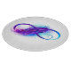 Infinity symbole with a beautiful feather painted in purple and blue bright colors on white background