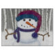 Puffy le bonhomme de neige est préparé pour la première chute de neige de la saison hivernale. Il est décoré dans son casquette et son foulard coloré et moelleux.