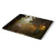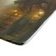 L'Extraordinaire planche de coupe en verre dispose d'une librairie magique nichée dans une forêt enchantée, avec rangées de livres et lumières brillantes parmi les branches d'arbres mystiques. Peinture numérique créée à l'aide d'un logiciel de génération d'IA. Le décor de cuisine parfait pour les amateurs de livres !