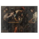 La peinture de Valentin "1618 à 1620" montre un groupe de soldats mercenaires rudes qui jouent à une table dans une taverne ou une ruelle sombre, où deux dés roulent tandis que deux autres, au centre et à gauche, jouent aux cartes. Alors que le jeune habillé plus finement dans un casquette à plumes à gauche examine ses cartes, une cinquième figure dans l'ombre derrière lui signale à son complice au centre la main du jeune dupe. Valentin présentait une scène crue et sinistre de la vie de rue contemporaine. - Cette oeuvre est du domaine public aux États-Unis parce qu'elle a été publiée (ou enregistrée auprès du Copyright Office des États-Unis) avant le 1er janvier 1926.