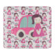 Girls Gols Places produits y compris lits de chien, casseroles à gâteaux, couvertures en toison, plateaux de service, paniers de basket, stylos, ballotins, et plus avec un design mignon, amusant, gai, girly, lunette, blanc et blanc avec des petites filles en robes roses, voitures roses et des cercles fantaisie bleu avec les coeurs!