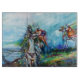 Chevaliers médiévaux avec chevaux, peinture figurative contemporaine colorée et expressive en bleu vif, rouge, vert blanc, marron, aquarelle par Alessandro Lumini 1989 Inspiré de la légende du roi Arthur et des Chevaliers de la Table Ronde.Ce design cool et artistique est aussi un beau cadeau pour Noël et les occasions spéciales.