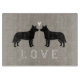 Silhouettes de chien de bétail australien sur Arrière - plan de style lin. Le texte peut être personnalisé. Un beau cadeau mariage pour les amoureux de Blue Heeler.