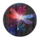 Lumineuse, volante, libellule rouge, avec des ailes transparentes et détaillées sur arrière - plan sombre, nocturne, lumineux avec plantes tropicaux et lucioles. libellule rouge.
